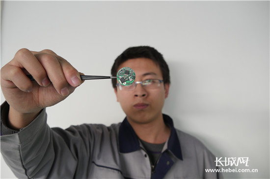 技術人員展示AVR02C芯片的電路板。通訊員 供圖
